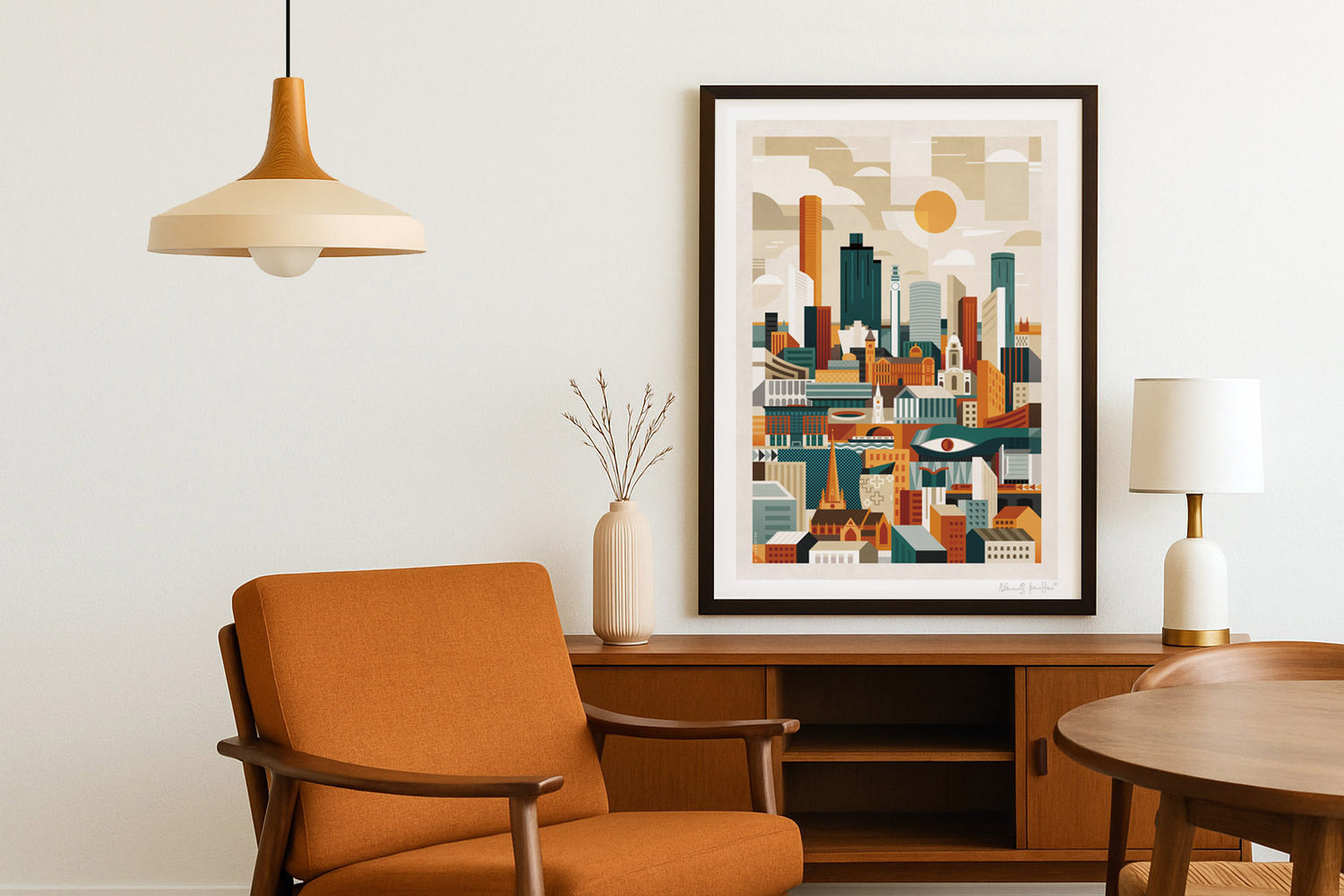 Exploring city skylines and iconic buildings using architectural patterns and geometric shapes