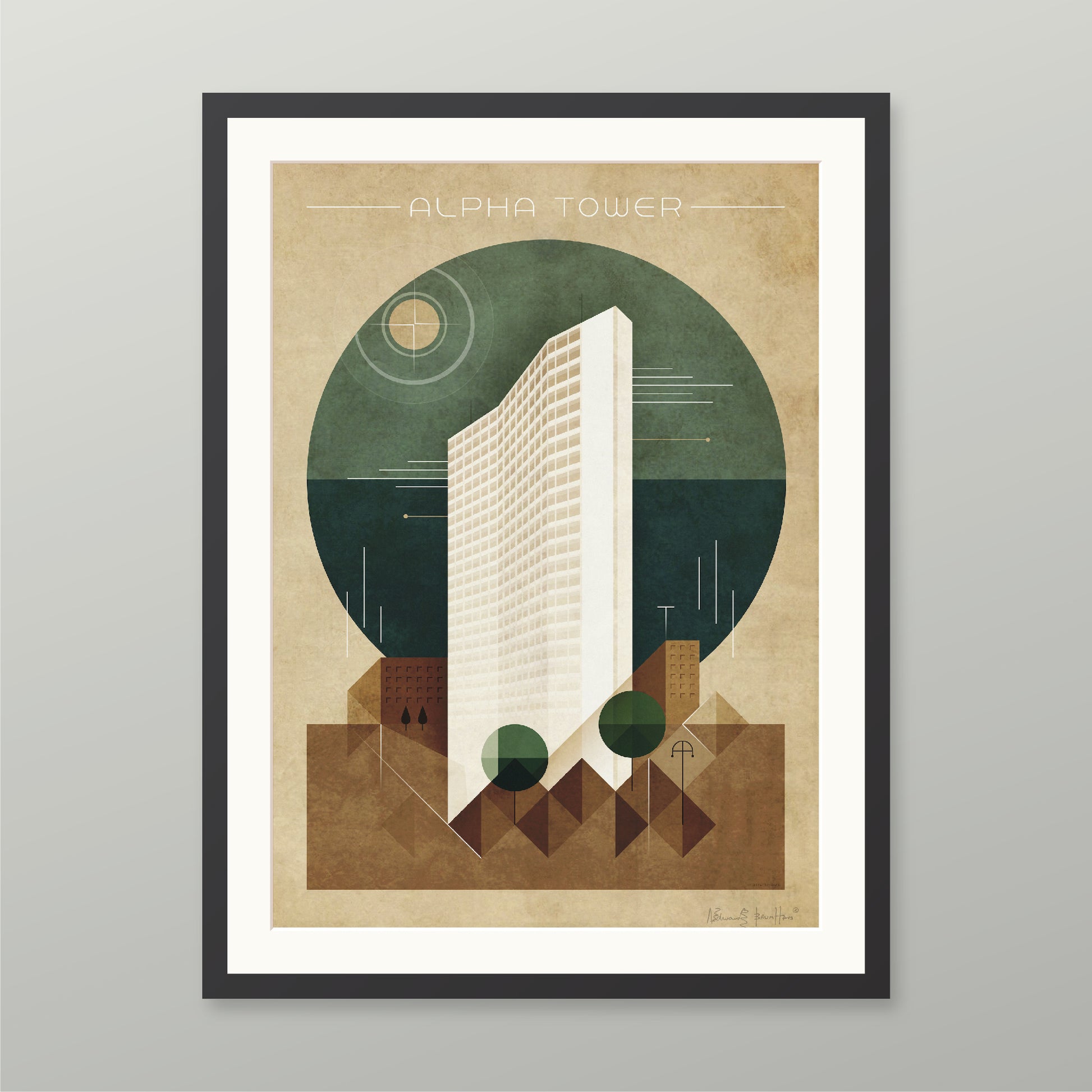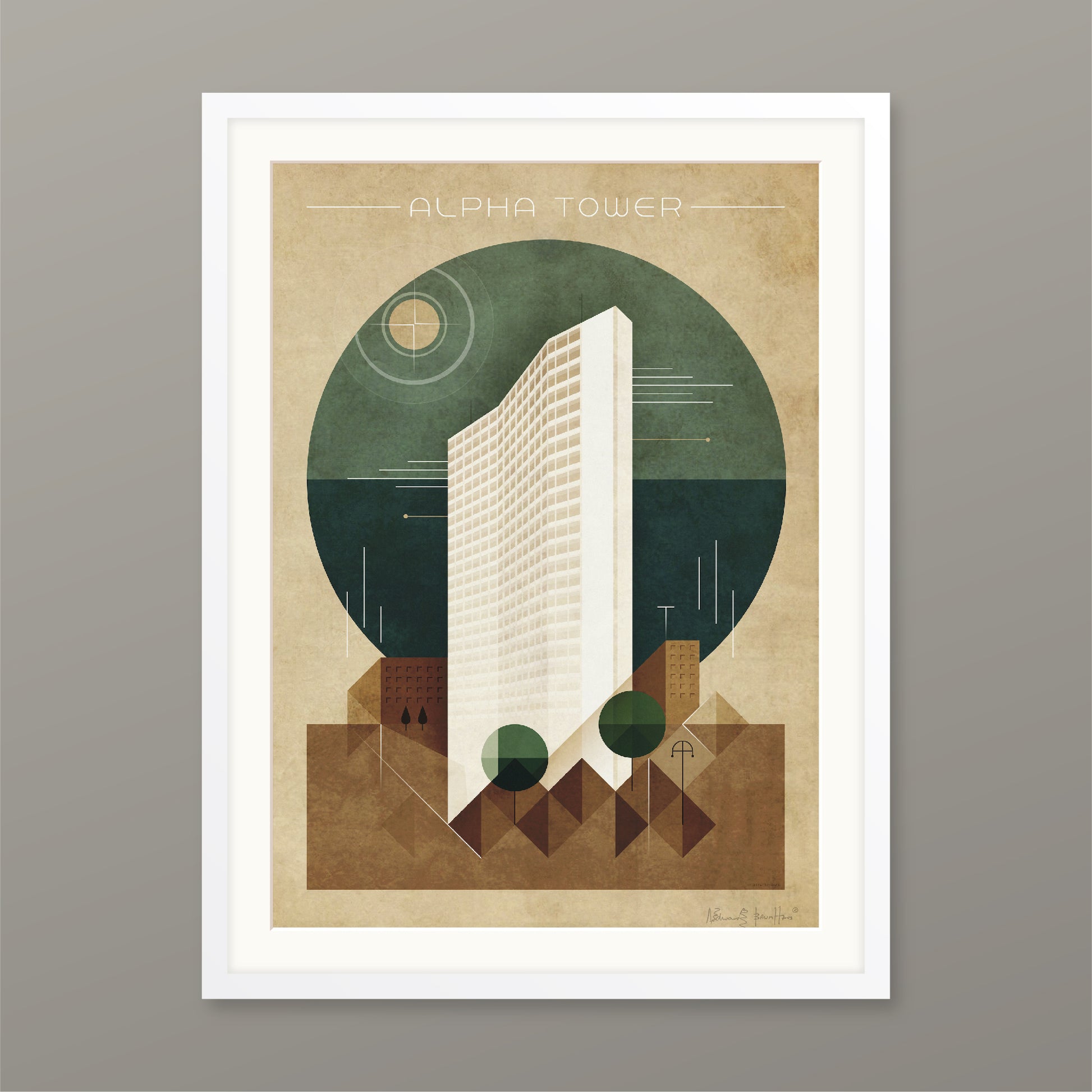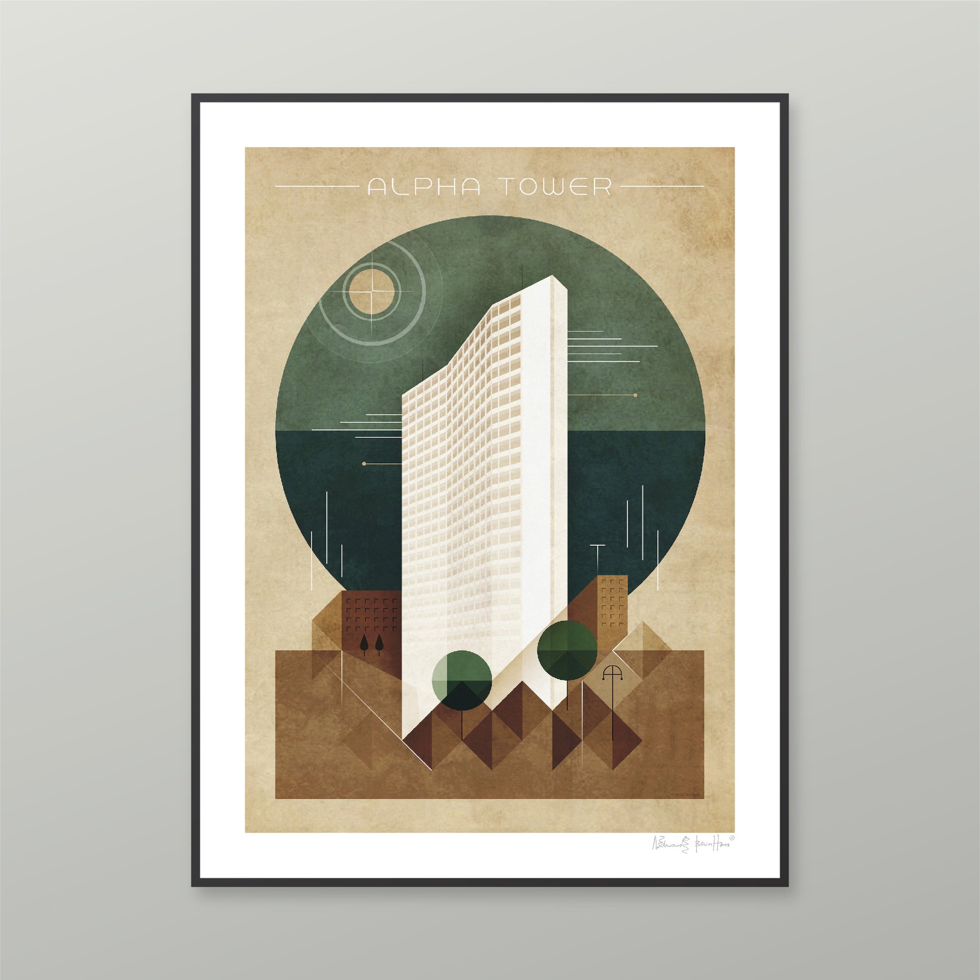 Alpha Tower, a key feature of Birmingham’s skyline and a Modernist skyscraper building. It was designed by the Birmingham-born architect George Marsh of Richard Seifert & Partners. It was completed in 1974 and served as the headquarters of the commercial television company ATV (Associated Television).