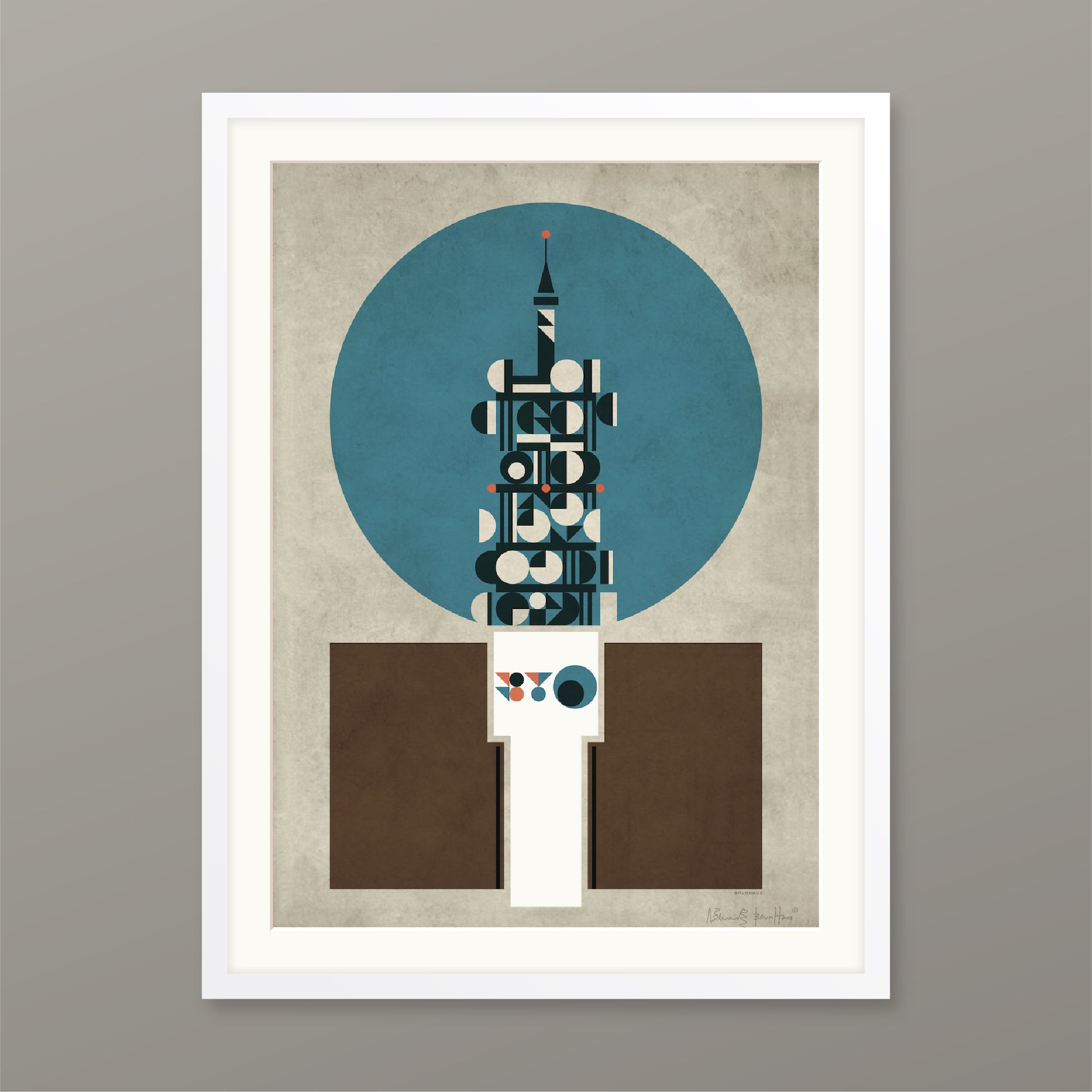 Consisting of a timber frame painted black or white with a smooth finish, or in dark walnut. These come with a white mount, except for the trimmed option. Please note the artist signature appears in the printed area on this option.