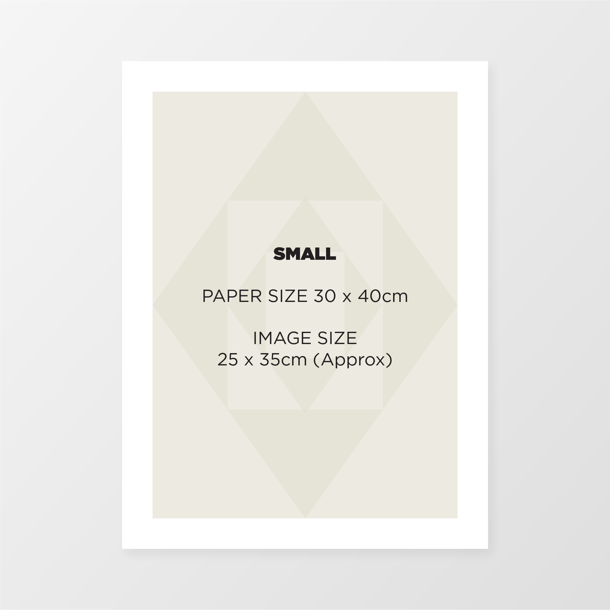 | Small | Landscape/Portrait | 33 x 43cm | 25 x 35cm |