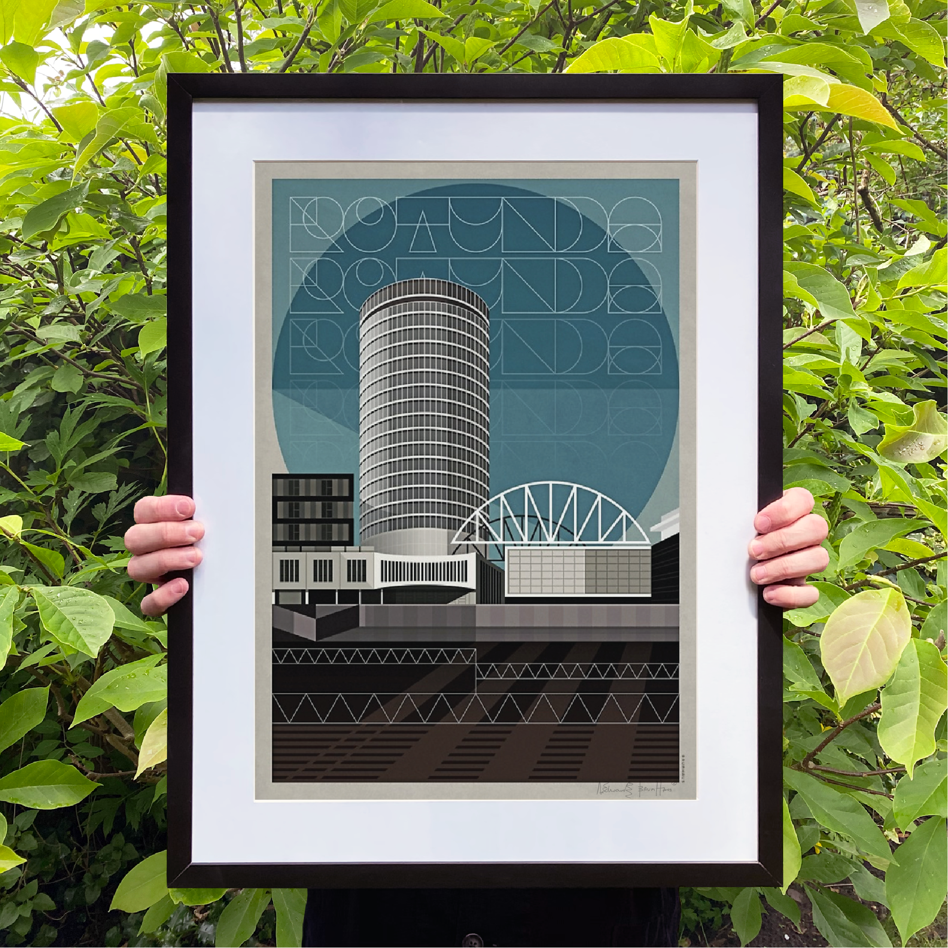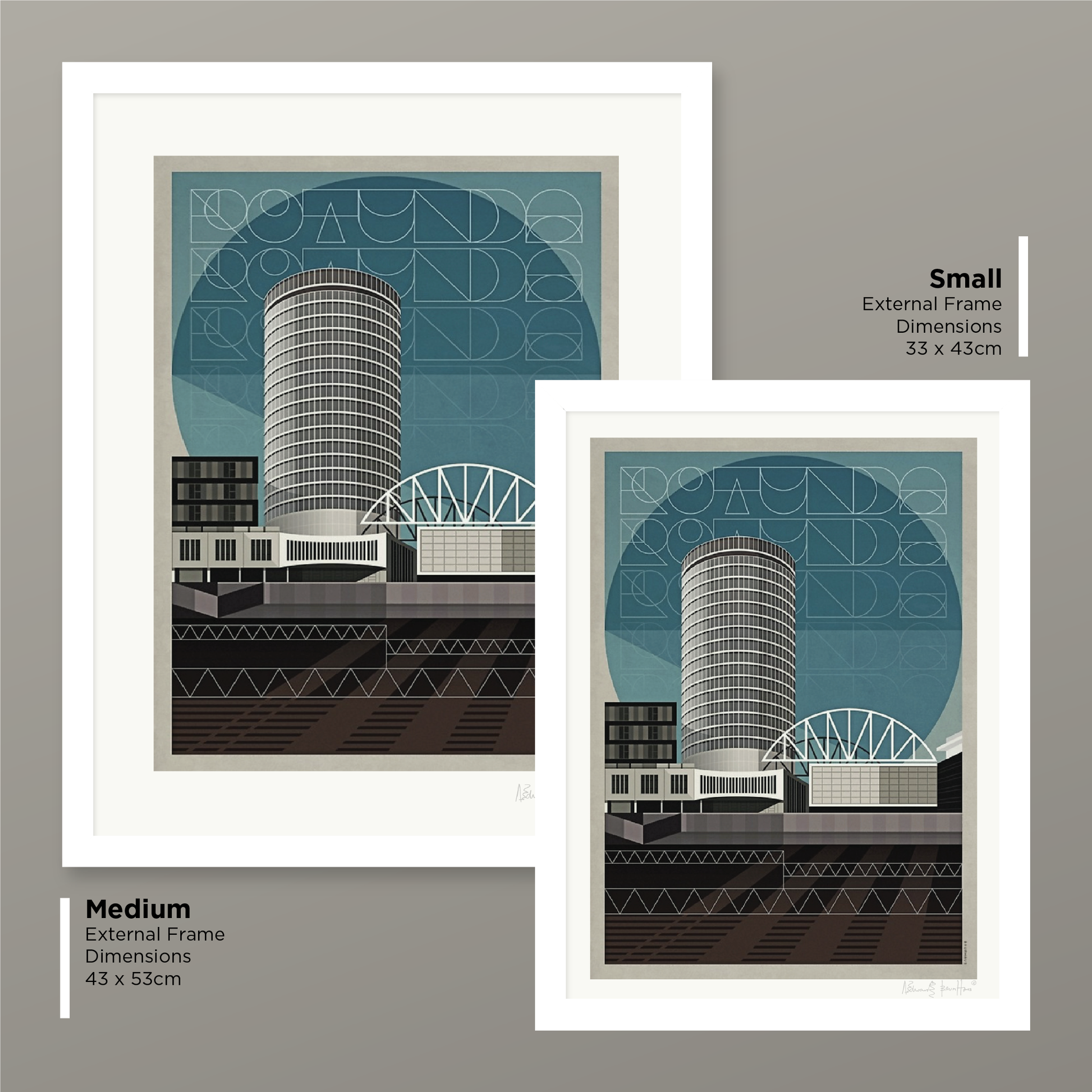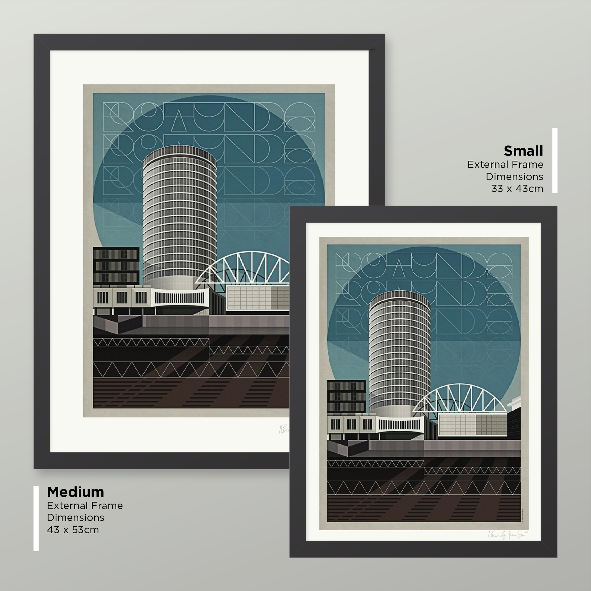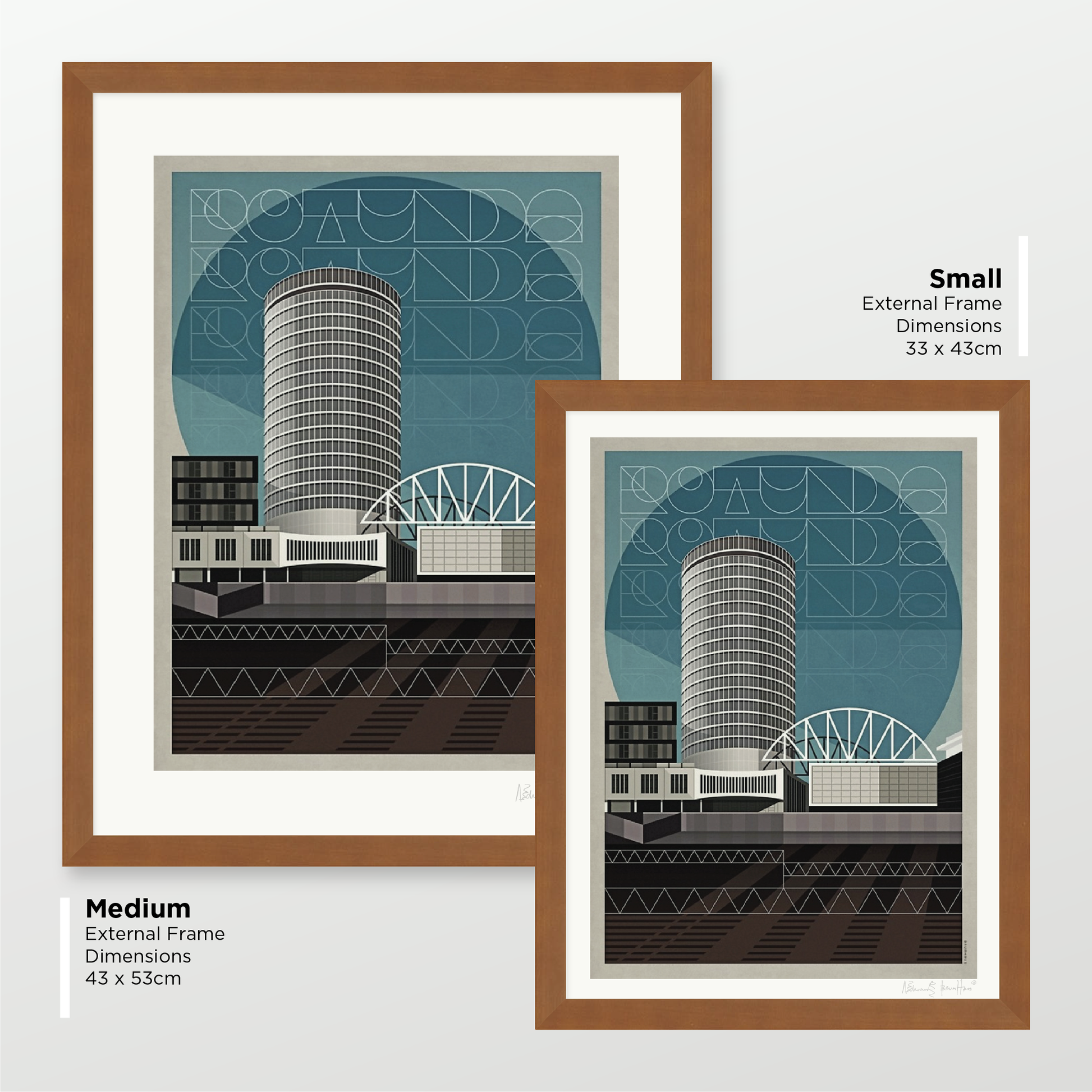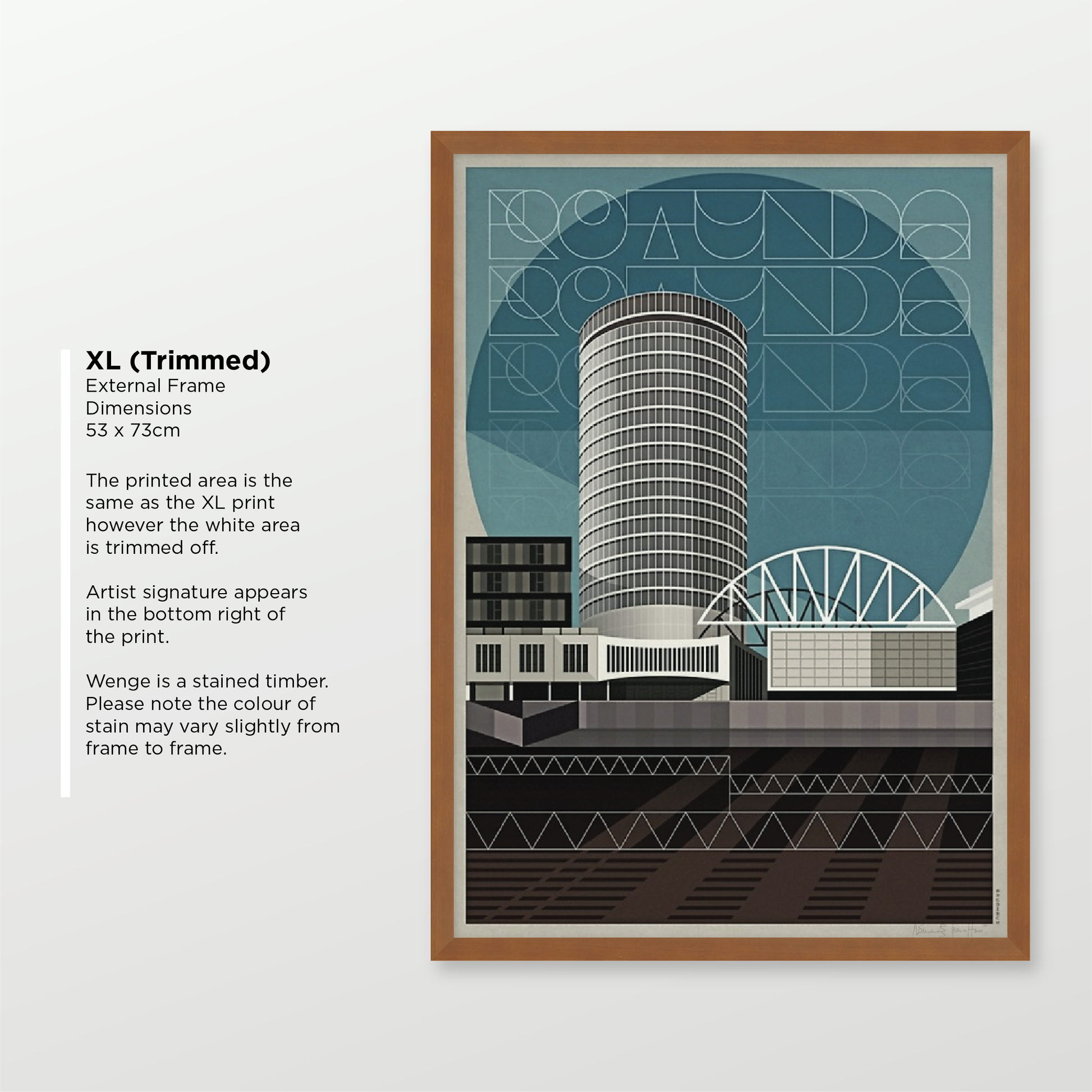 Consisting of a timber frame painted black or white with a smooth finish, or in dark walnut. These come with a white mount, except for the trimmed option. Please note the artist signature appears in the printed area on this option.