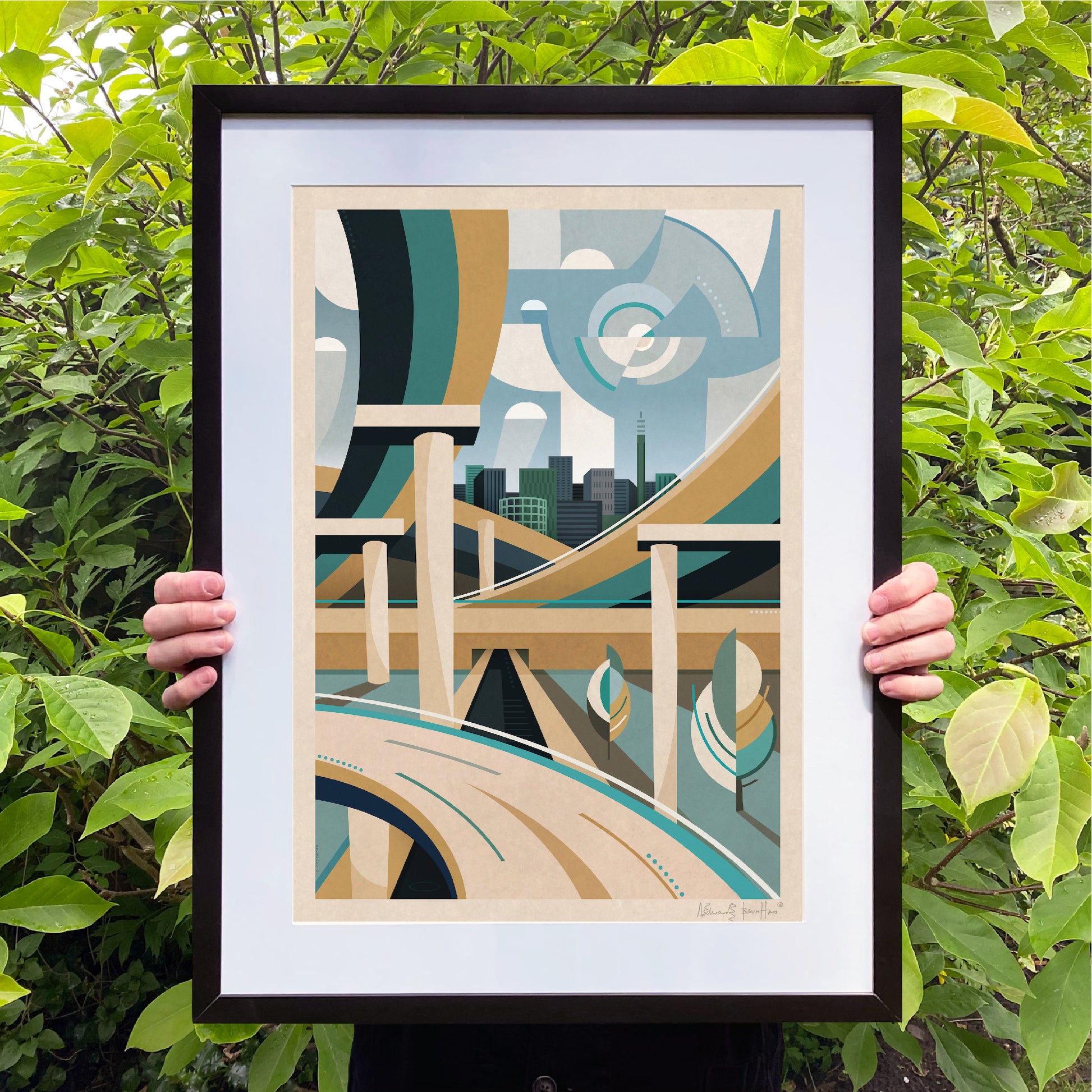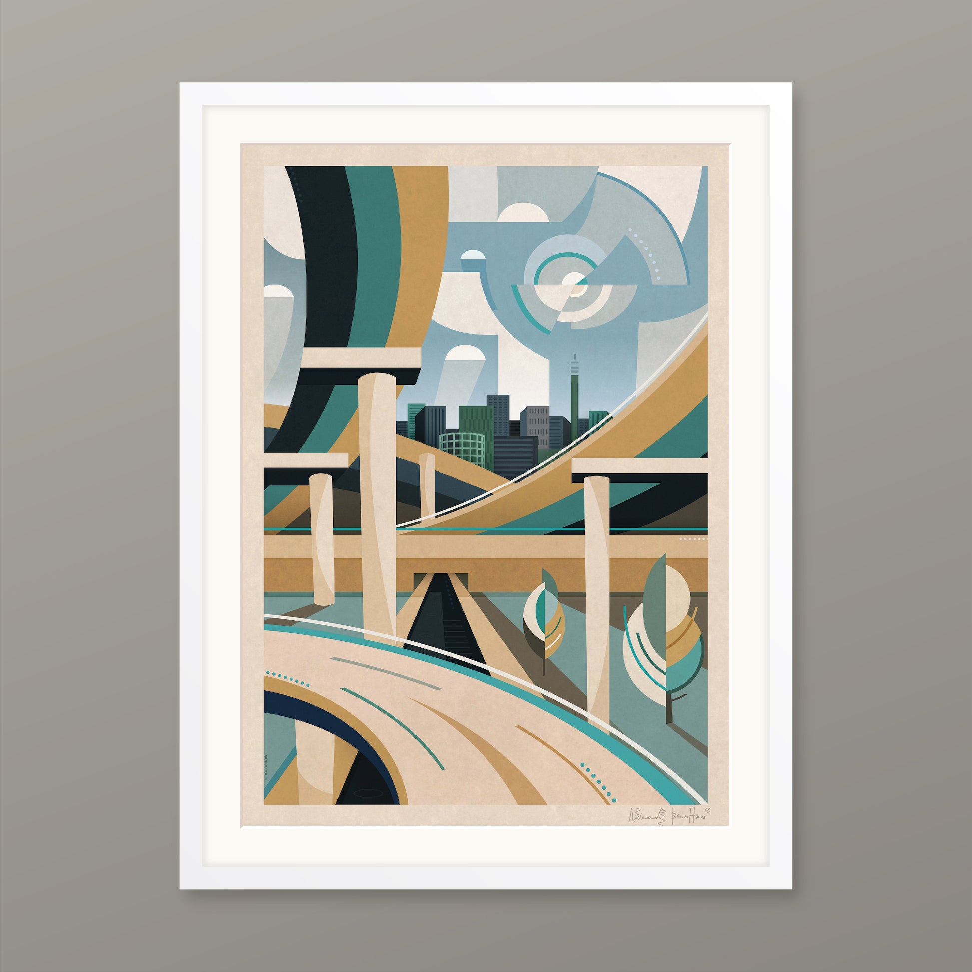 Consisting of a timber frame painted black or white with a smooth finish, or in dark walnut. These come with a white mount, except for the trimmed option. Please note the artist signature appears in the printed area on this option.