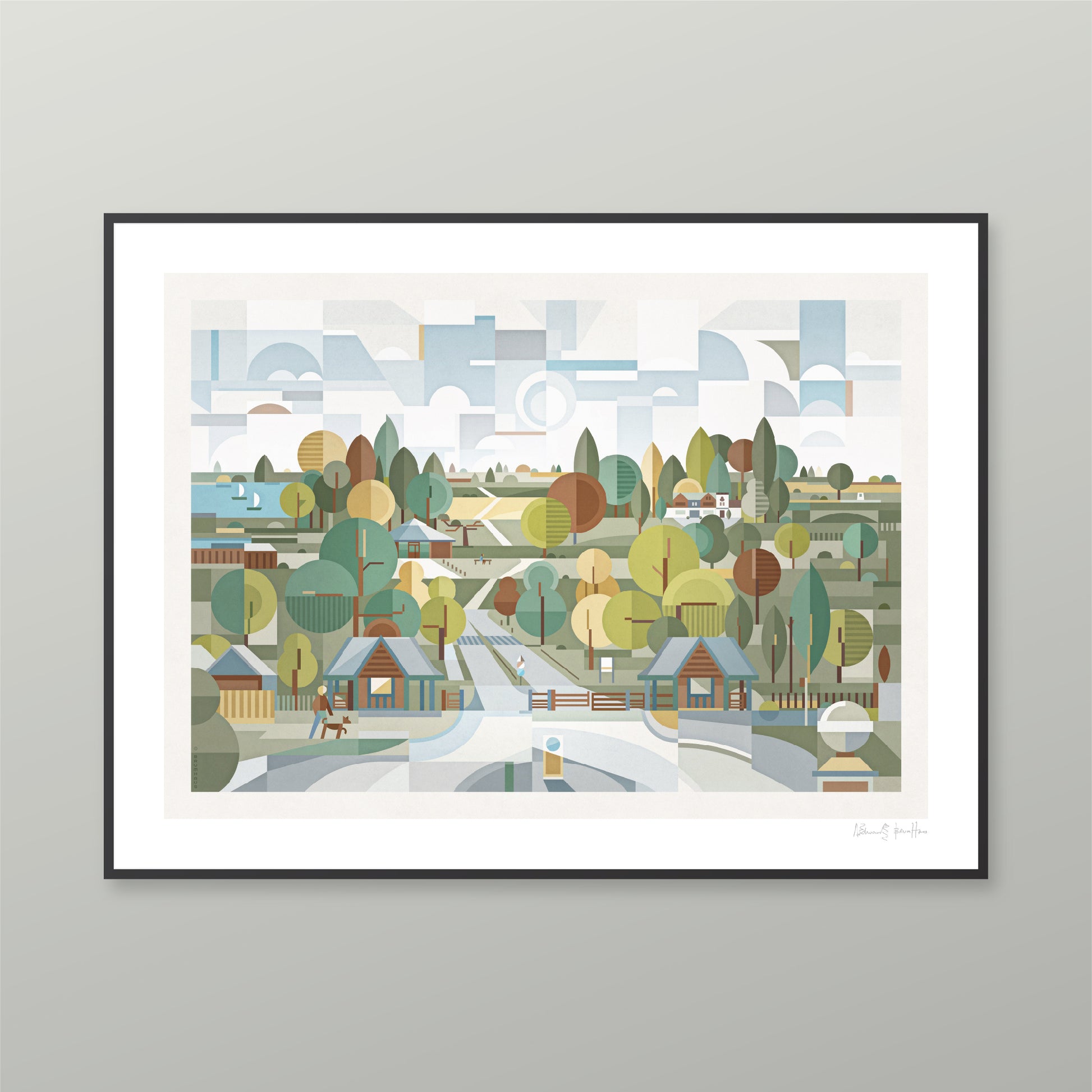 This print is a view from Town Gate, detailing the park entrance, Information Centre and a few other easter eggs you can spot if you are familiar with the park.